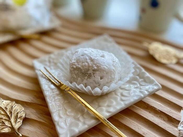 袋から出してみると たっぷりのもち粉が絡まった大福