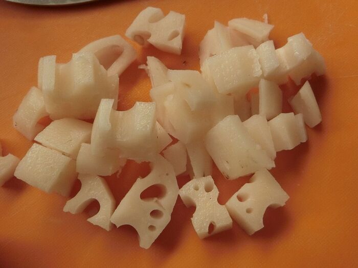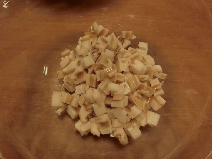 レンコンは小さく切り酢水に5分くらいつけておきます。