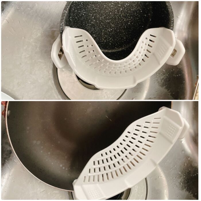 ざる、といってもボウル型ではなく鍋の淵に取り付けて使うタイプ。