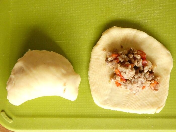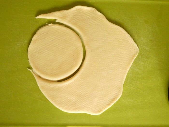 生地を薄くのばしてお椀などで丸く型抜きします。