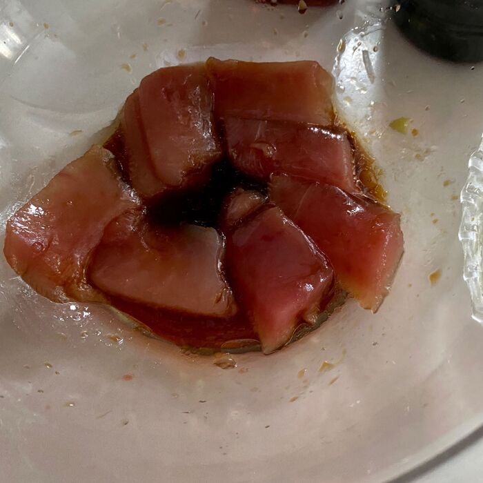 お刺身を浸します。少し冷蔵庫に入れて放置します。