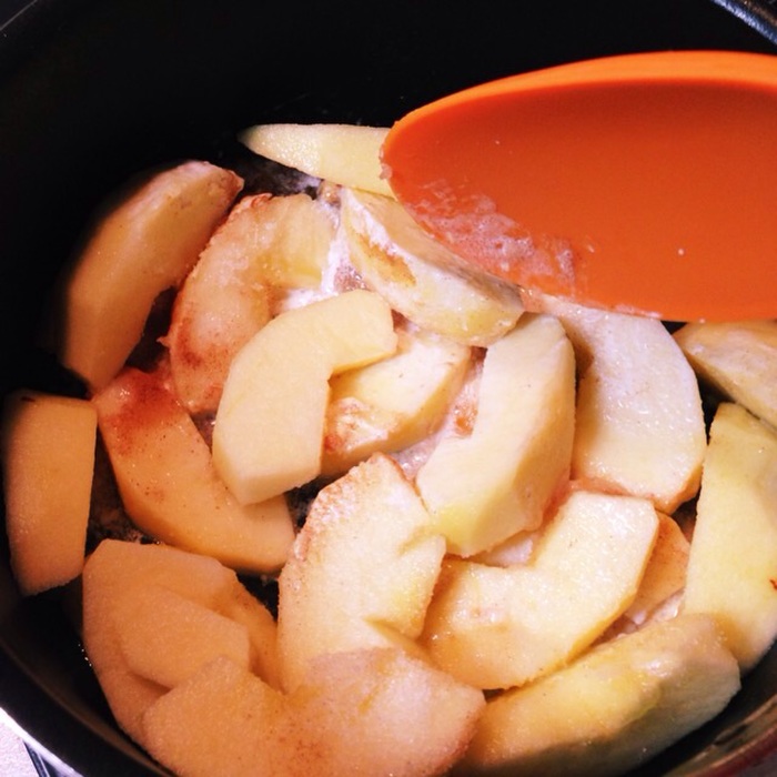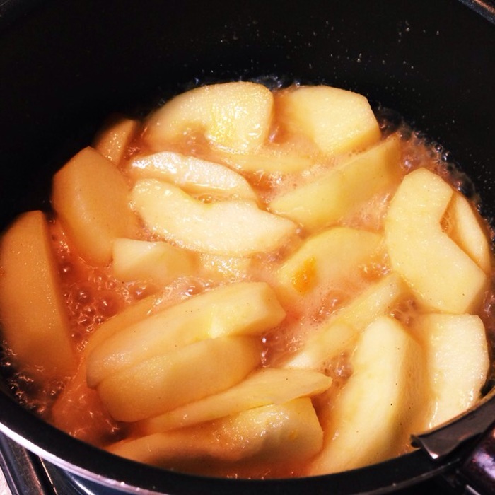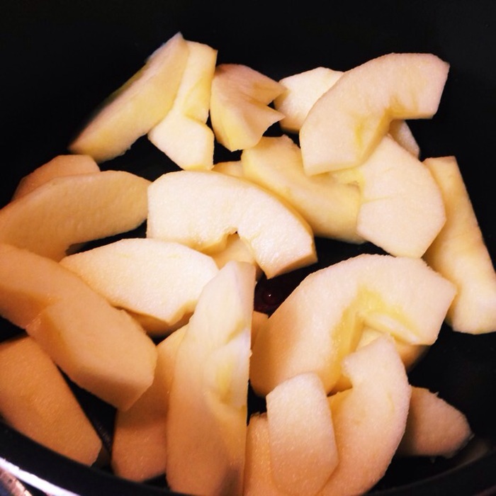りんごの皮をむき、12〜16等分にして全て鍋にいれます