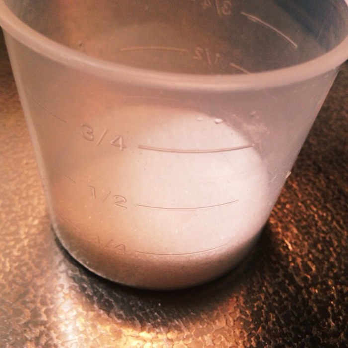 豆乳生クリーム(豆乳)と砂糖は、お米を測るはかりで1/4のさらに半分くらいのとこまで入れて鍋に入れる