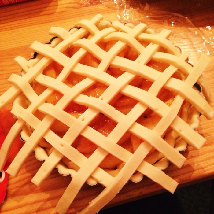 凍らせておいたパイ生地でないと、上手く編み込めません。