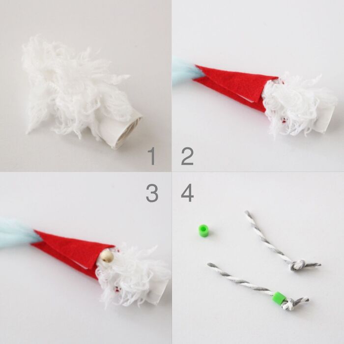 1.ヒゲ用毛糸を人形土台に接着(ヒゲはワタでもOK!)