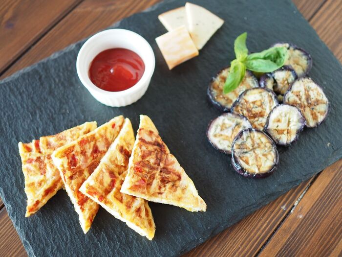 ホットサンドメーカー1つでできるおつまみメニューです。