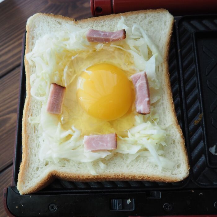 卵のような液状のものでも巣ごもり風であればホットサンドに!