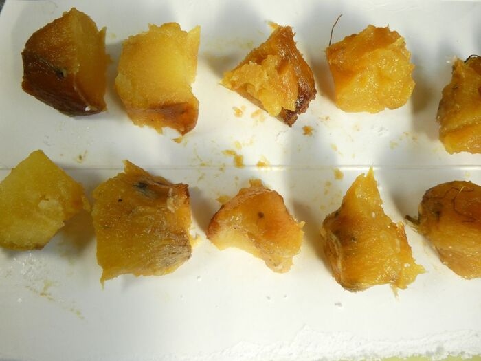 もう一度レンジで1分30秒加熱し、さらに混ぜ合わせたら片栗粉をまぶして冷ましておきます。