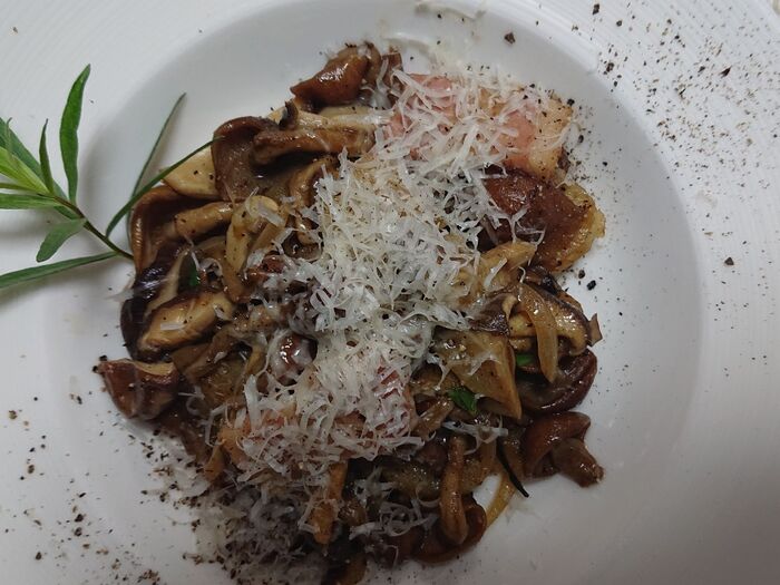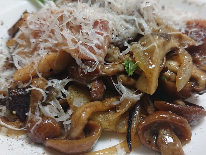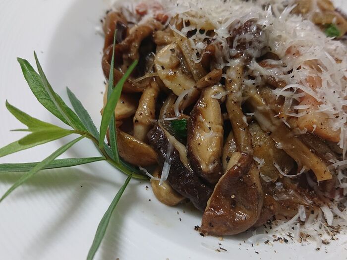ポテbaconとキノコは・・・・王道の組み合わせ、仕上げに加えるestragonで別物に変化します。