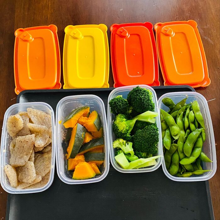買ってきたお野菜を調理して、この容器に入れると全て入りました。