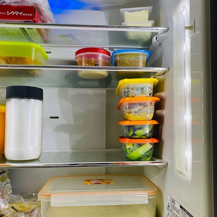 冷蔵庫にも場所を取らずに、縦に重ねて収まり、