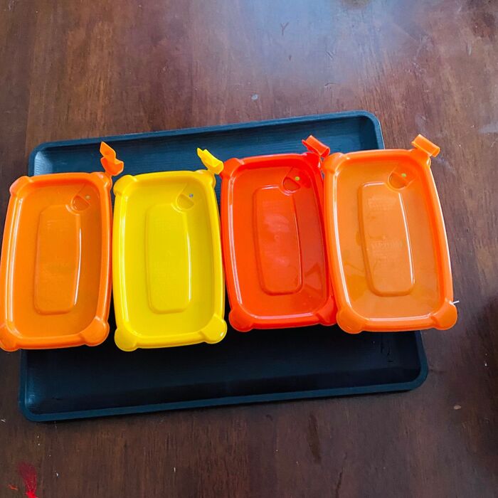 冷蔵庫にも少ないスペースで縦に4個重ねて収まります。