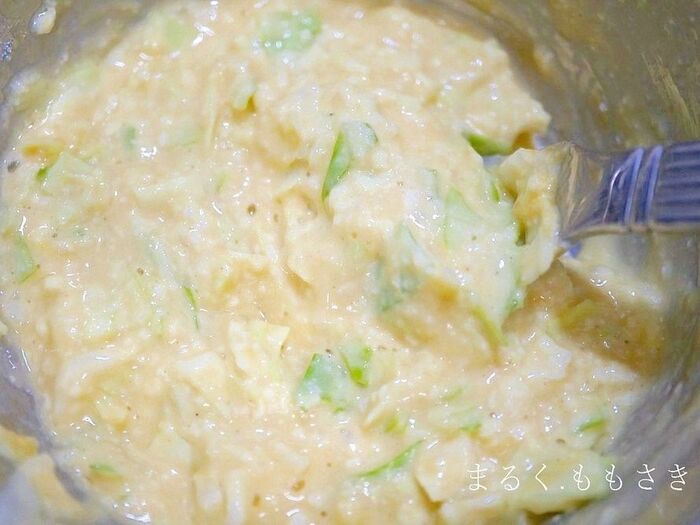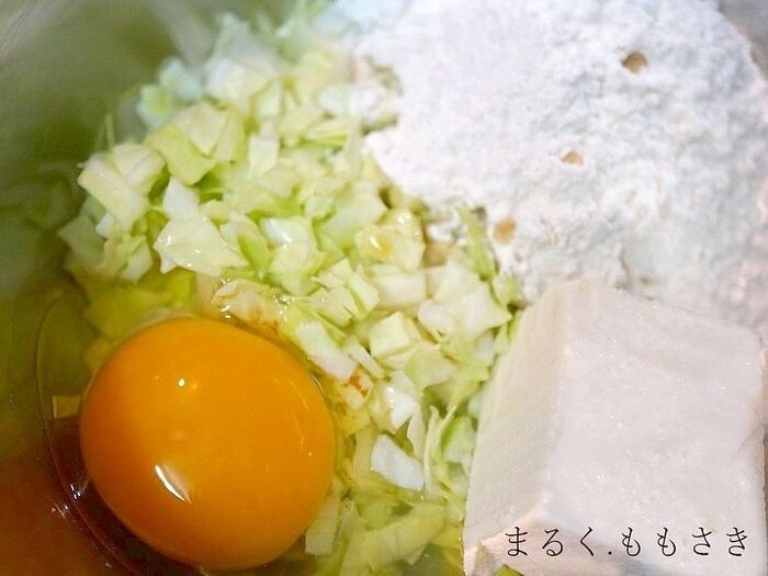 粉と卵で水分が多めになるので、豆腐を少し入れることで