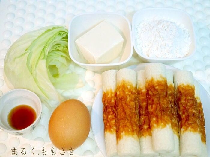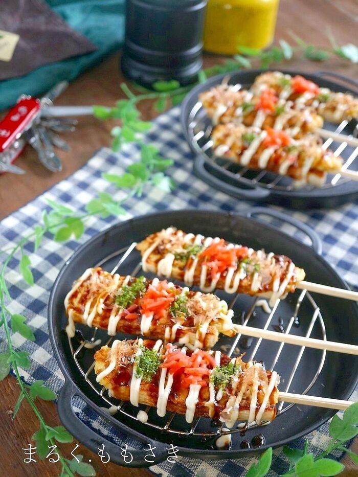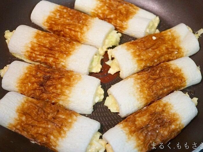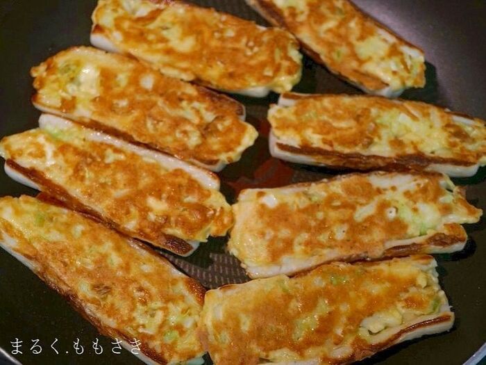 イオンブランドのお安いちくわが柔らかめで開きやすかったです^^