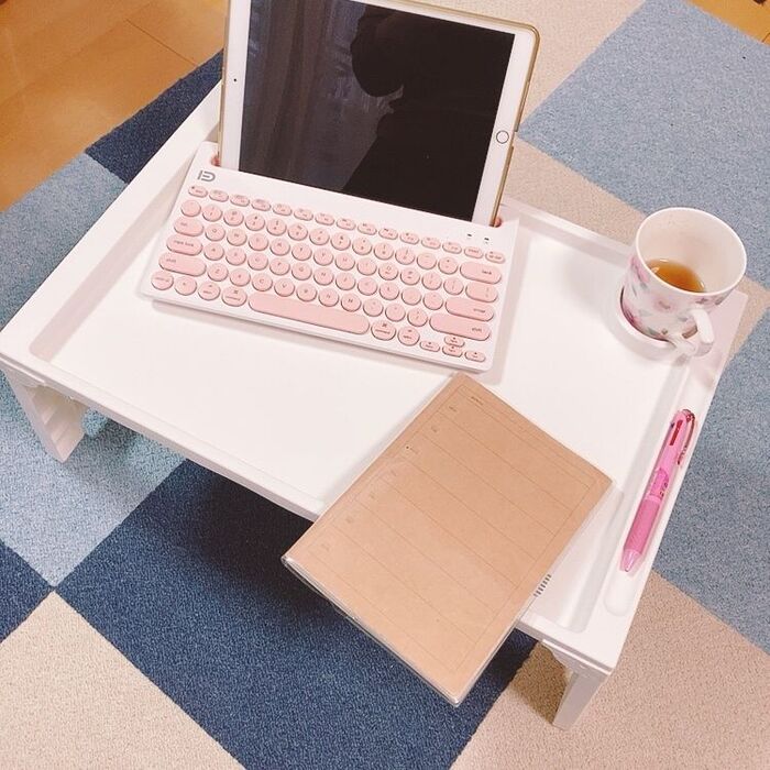 iPadと小さめのノートを置いたらこんな感じです。