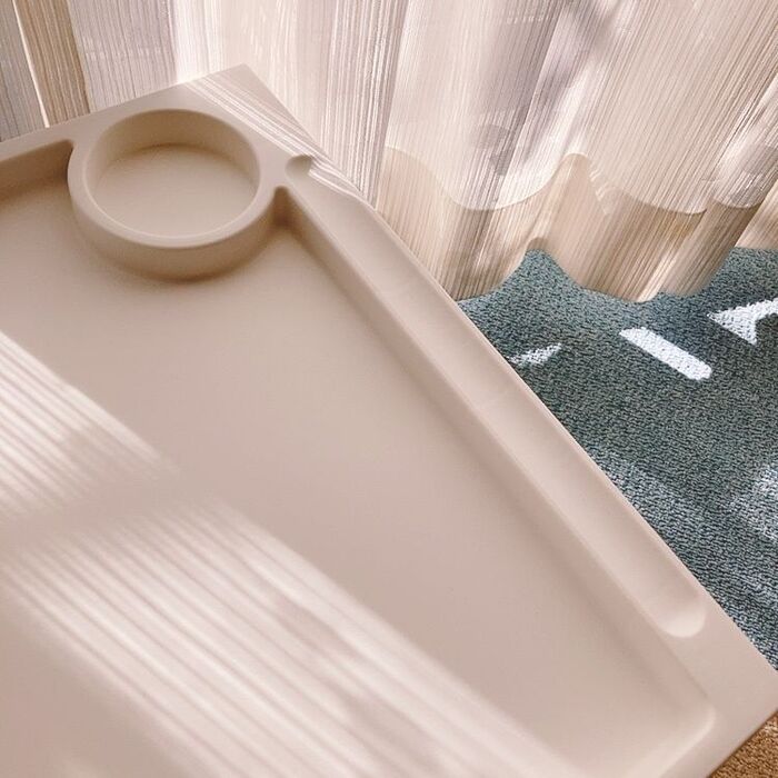 右側にはコップを置ける部分とペンを置ける部分が窪んでいます。