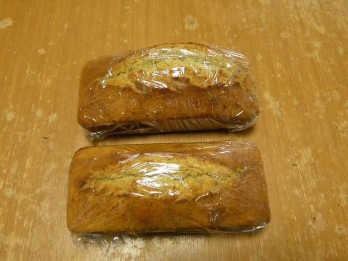 焼きあがって粗熱をとった後、ラップにくるんで1日置くとしっとりして美味しいです。
