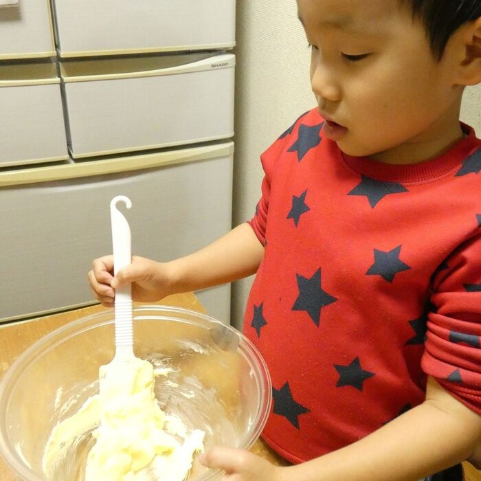 室温で柔らかくしたバターに砂糖を混ぜ合わせます。