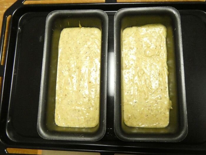 パウンド型に入れ、オーブン180℃で25~30分くらい焼きます。
