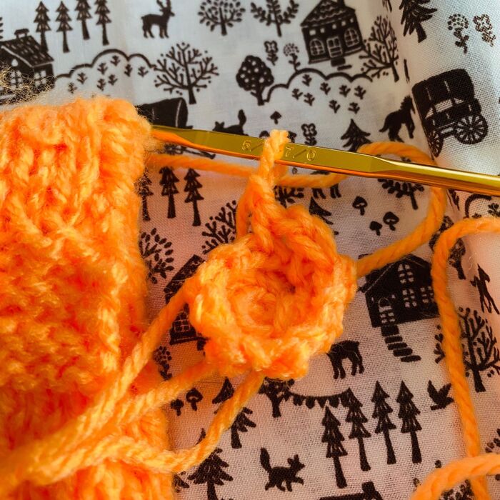 取っ手を編みます。表編みと裏あみを交互に編んでいきます。
