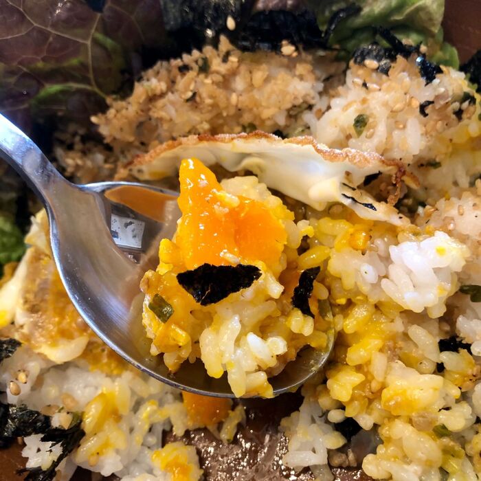 海苔を韓国海苔にしたり、プラスαで食べるラー油を加えて、韓国風にしても旨い!