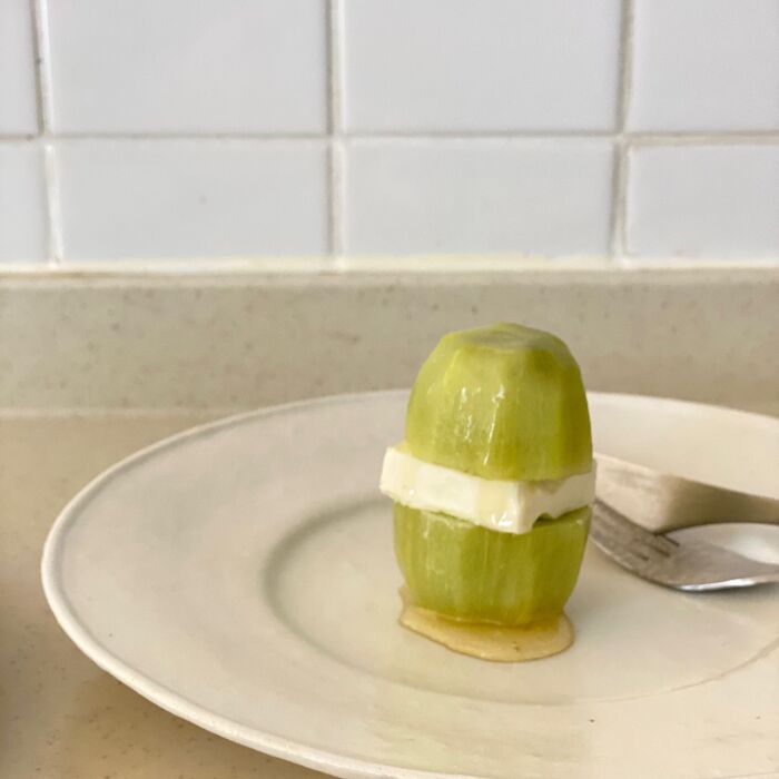 とっても簡単なのに見栄えがして美味しいこちらのキウイサンド。半分にカットしたキウイにクリームチーズを挟んでお皿に盛るだけ!