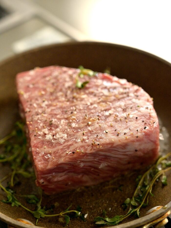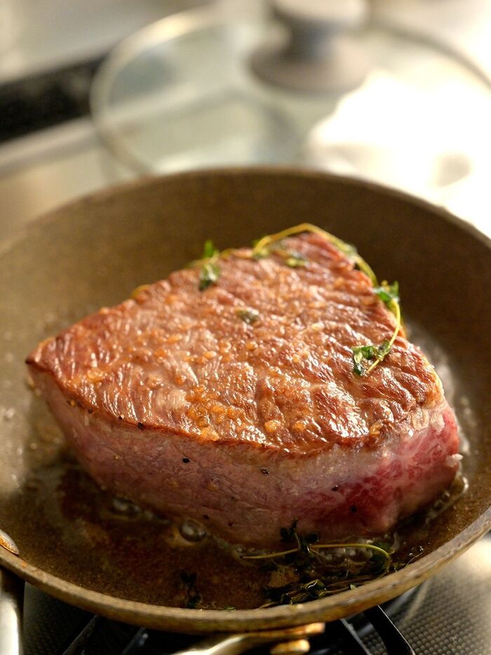 肉の臭みを消しにお好みのハーブ(タイムやローズマリー等)と一緒に焼くのもお洒落