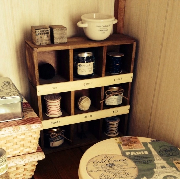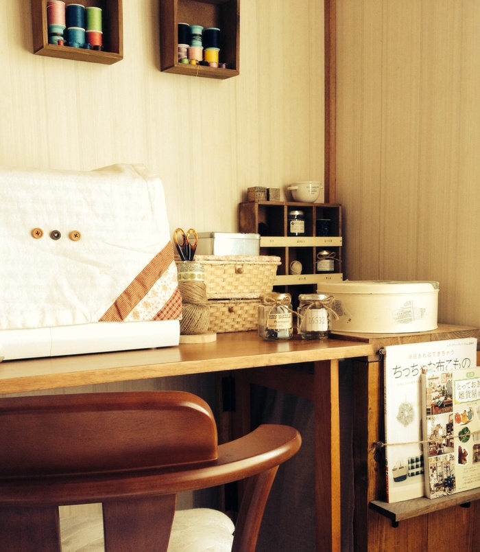 ミシンコーナーで手芸グッズを見せ収納して使っています♪