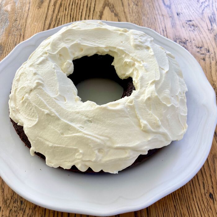 市販のチョコレートケーキミックスを使って、リング型のケーキを焼きます。(※商品によっては卵やバターなどを別途用意する必要があります。)