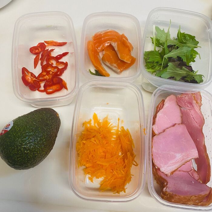 食べやすく切ったアボカド、ベビーリーフを盛り付けます。