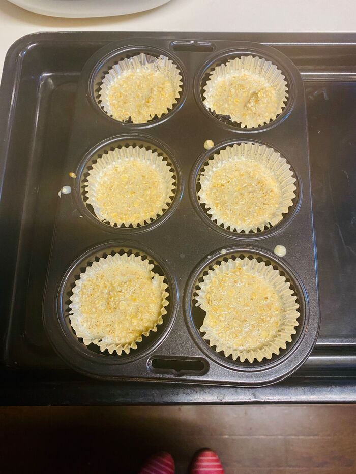アルミカップに生地を流します。