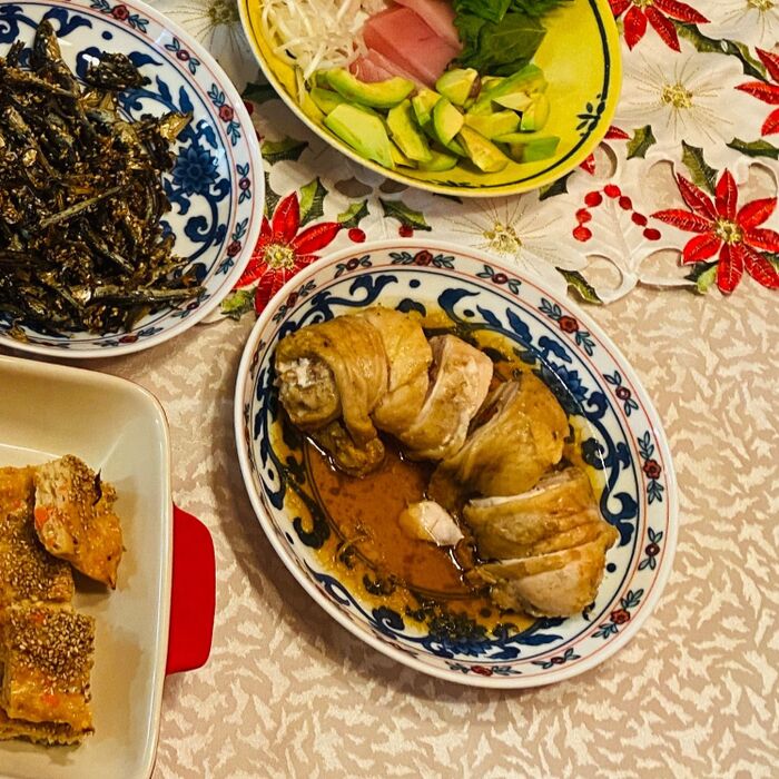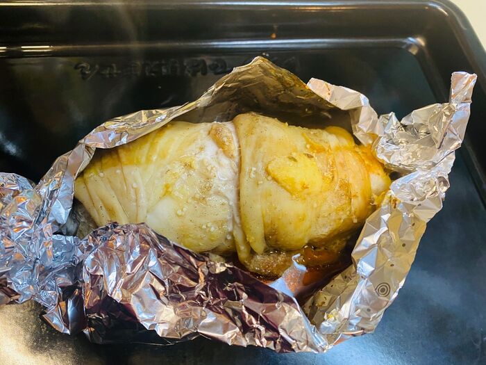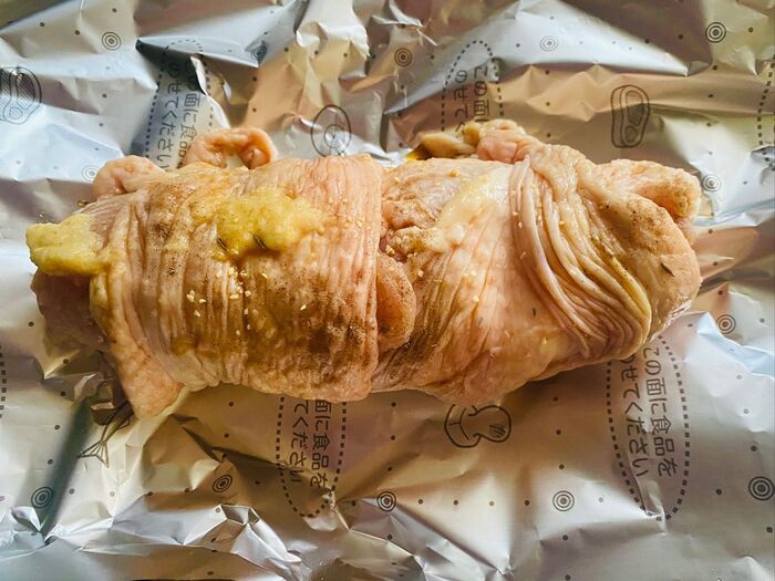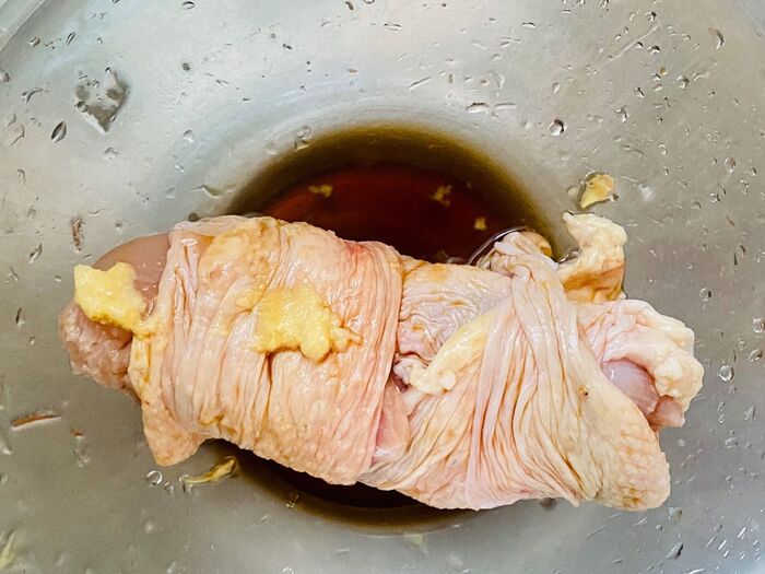 醤油、酒、味醂、胡椒、生姜に漬け込みます。