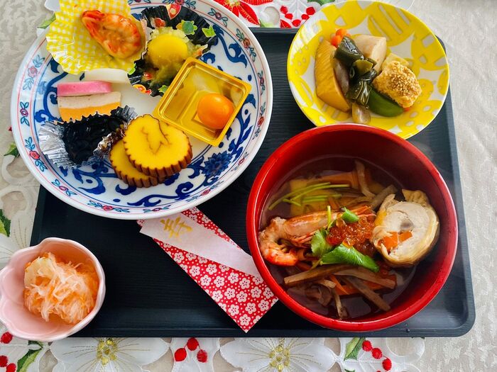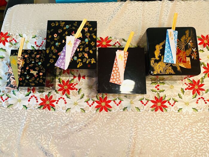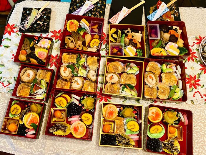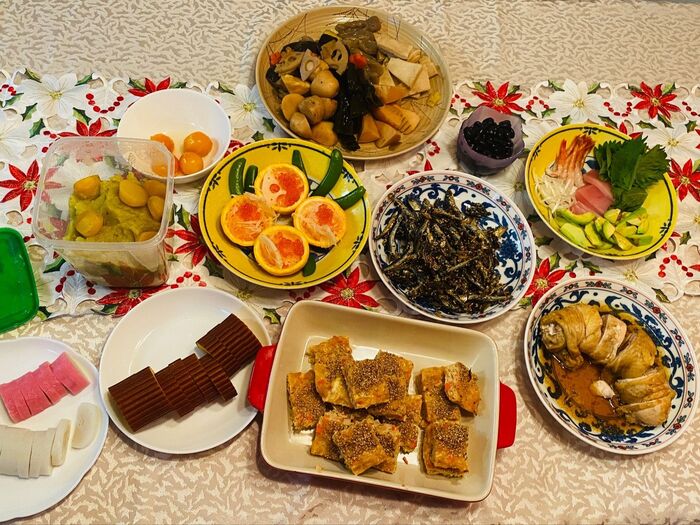 おせち料理に盛り付けた後は、栗を上にのせ、