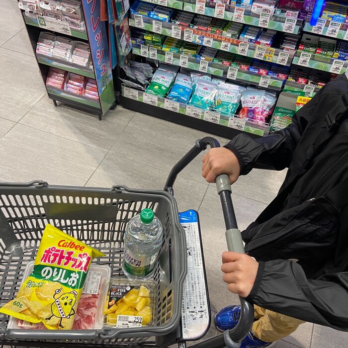 豚肉とジュースと果物と自分用のポテトチップスを購入。なぜ豚肉?と聞いたら「夜ご飯を作りたかったから」と。