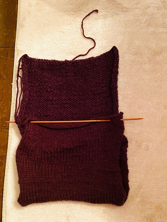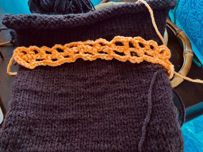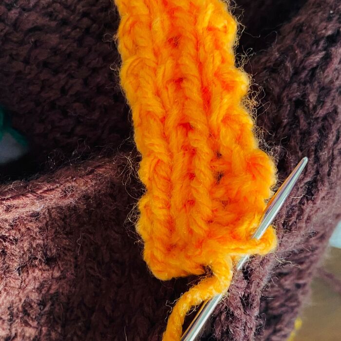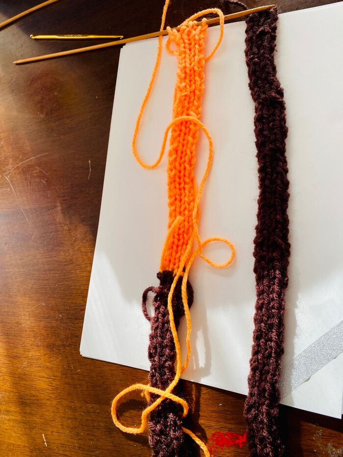 毛糸を代えて、オレンジの毛糸で、30cm編みました。