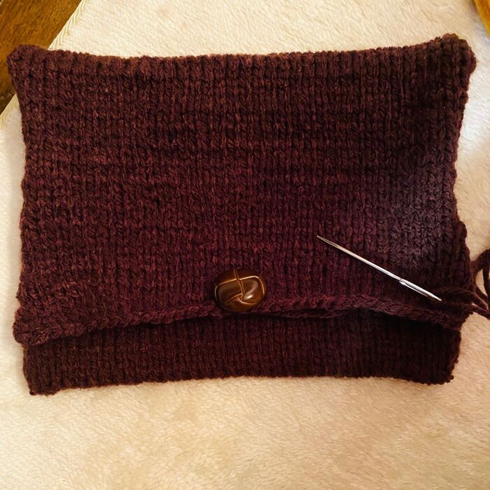 蓋が15cmになるように両脇を毛糸で閉じます。