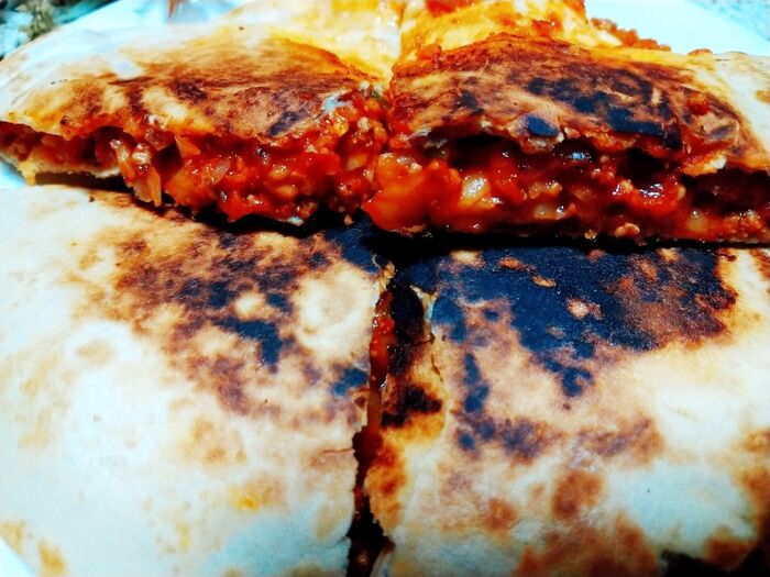 8.上にトルティーヤを重ねて食べやすく切って完成