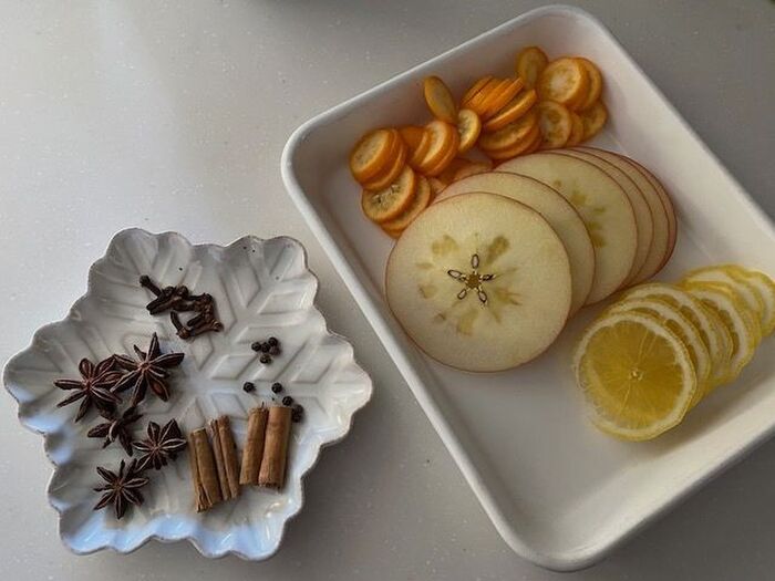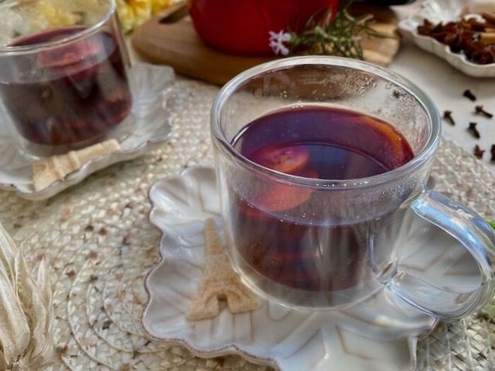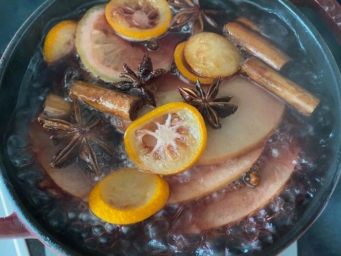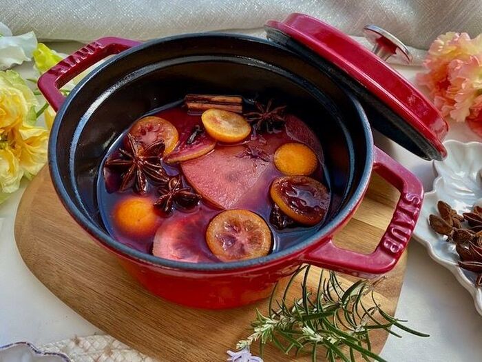 輪切りにしたフルーツときび砂糖 aのスパイスを鍋に入れ