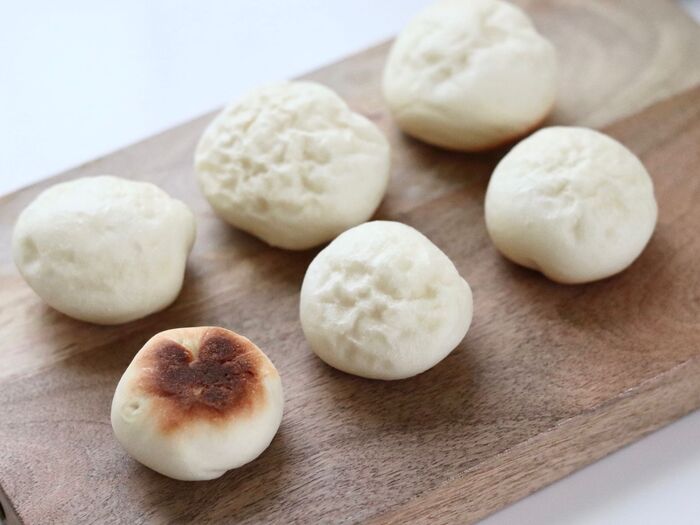 フライパンの中で35分間、発酵してそのまま焼きます。