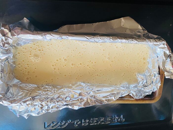 ②パウンド型にくっつかないアルミシートをしきます。