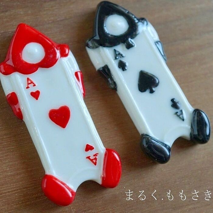 上のトランプ型のカトラリーレストに添えたのがピンクゴールド色のです。
