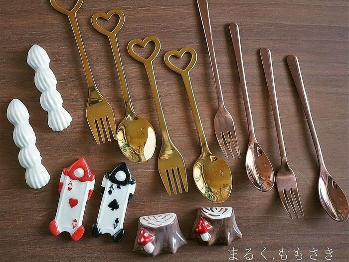 ハートの先になっているのと、ピンクゴールド色のカトラリー。