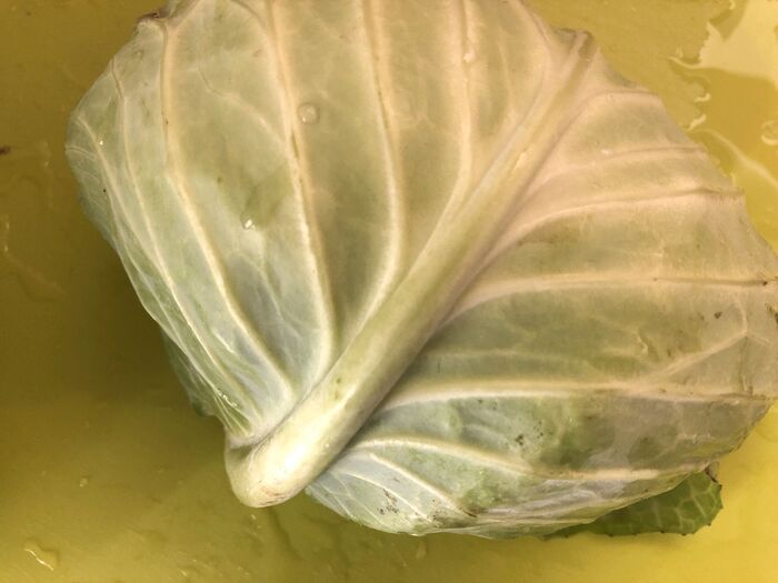 キャベツも白菜のように生長していく野菜です。ですので芯を取り、水で濡らしたキッチンペーパーを入れ乾燥させないようにしておきます。