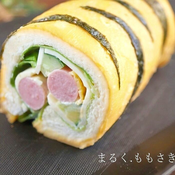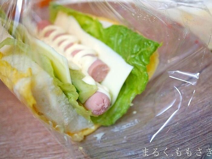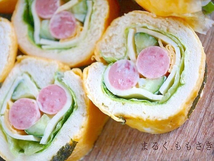 卵焼きがパンより大きい場合は、カットしてそれを一緒に巻いてください。