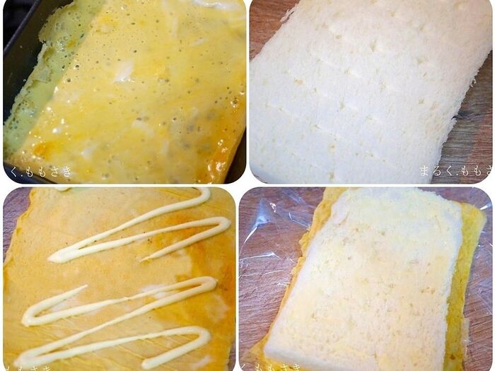 薄焼き卵とパンの間にマヨネーズを塗っているので
