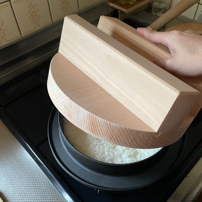 すぐにおひつに移して釜は洗って火にかけてとひと手間台所仕事が増えましたが、それも1つの楽しみと
