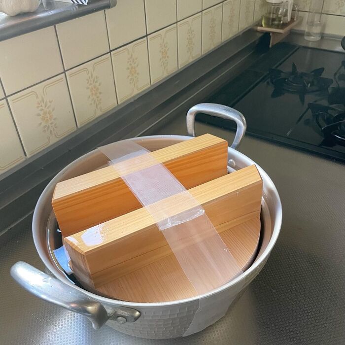 まずは水を木によく含ませるとのことで、表裏30分ずつ水に浸しておきました。