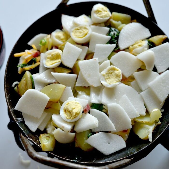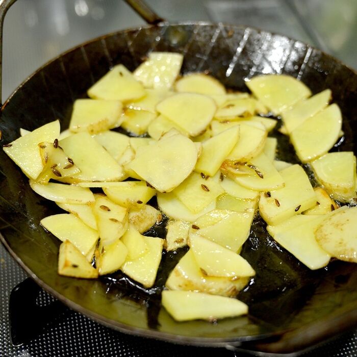 ・残りの長芋とじゃがいもは5ミリ幅のいちょう切りにする。