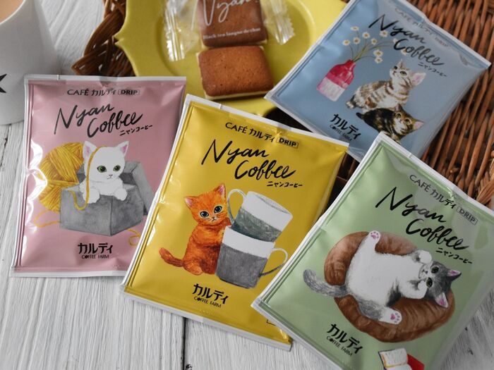 こちらはニャンコーヒーセットの中身ではないのですが、レジ横にあった思わず衝動買いしてしまったドリップコーヒー。コロナ禍ということもあり、おうちでお仕事の方も多いと思いますので、コーヒータイムにいかがでしょうか。可愛い猫ちゃんに癒されること間違いなしです!