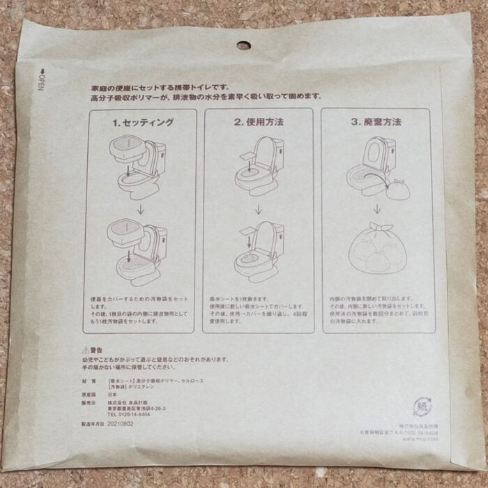 家の中だけでなく、気軽に持ち出せる無印良品の「非常トイレセット」。